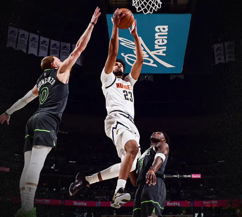 第一节比赛戈登罚球得分,迪文琴佐命中三分后约翰逊上篮得分,迪文琴佐继续命中三分后麦丹连得4分,穆雷罚球3中3后兰德尔投篮命中,约翰逊命中三分后麦丹罚球得分,戈登造成杀伤后森林狼打出一波9-0,约基奇命中三分后戈贝尔扣篮得分,里德完成暴扣后掘金打出一波7-0,末尾阶段森林狼打出一波6-1,第一节比赛结束森林狼领先10分。第二节比赛布朗命中三分,里德命中三分后哈达威也命中三分,戈贝尔补篮得分后掘金打出一波8-2,道苏姆命中三分后穆雷连得4分,虽然之后爱德华兹、兰德尔得分回应,可之后掘金回击一波7-0追平比分,末尾阶段两队打得有来有往,半场比赛结束两队打平。